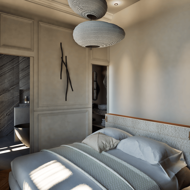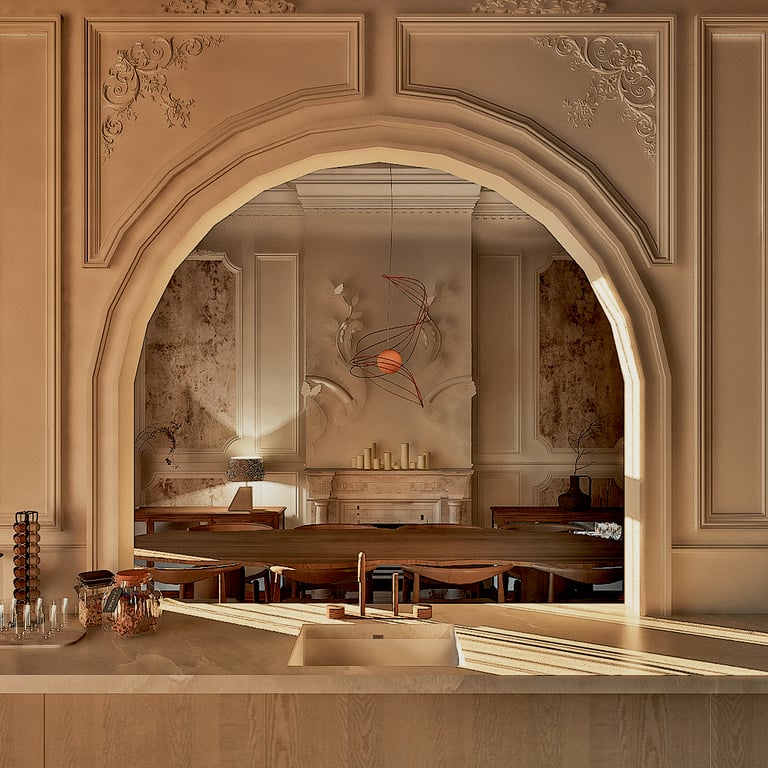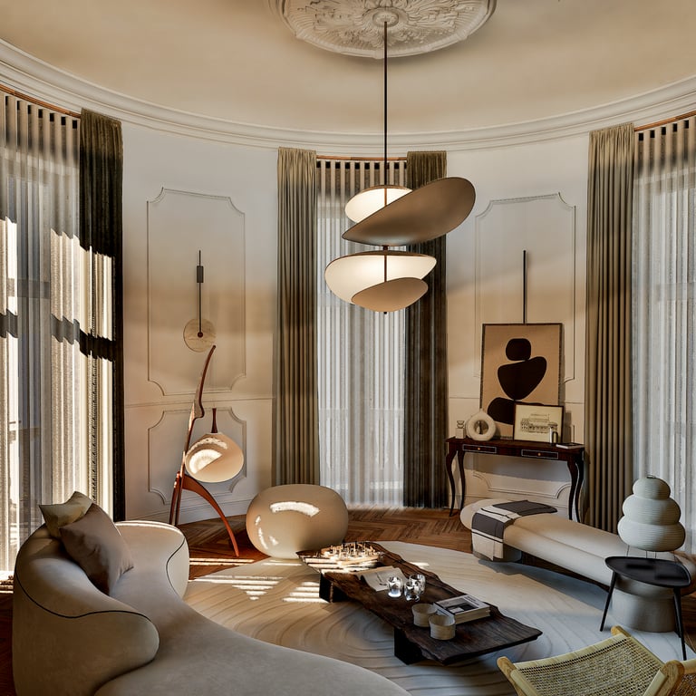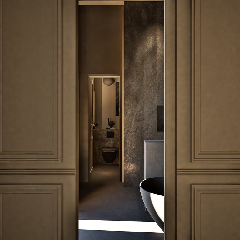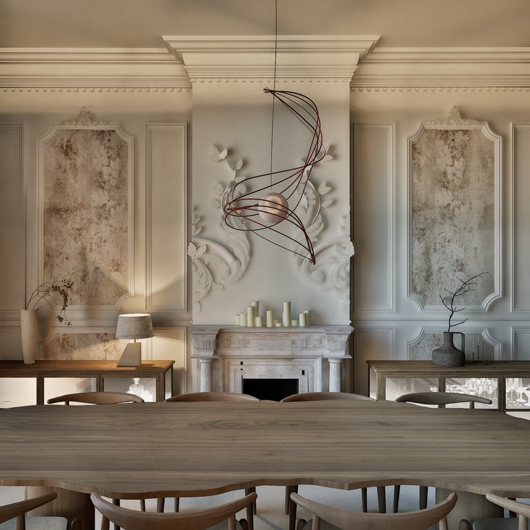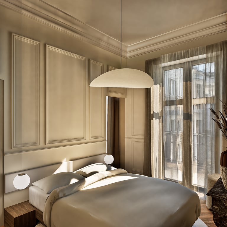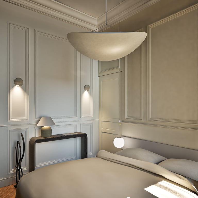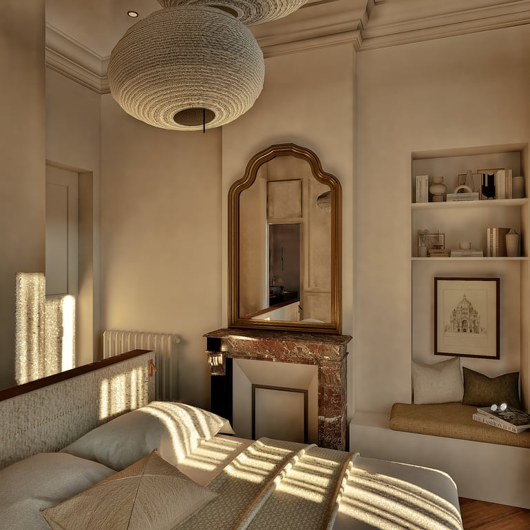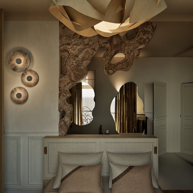 Ce projet reflète le charme haussmannien tout en harmonie avec le style wabi-sabi grâce à l'attention portée à chaque détails. De la réorganisation des pièces aux choix des matériaux des aménagements sur mesures, cet appartement de 184 m² est unique et créer un havre de paix en introduisant chaleureusement la nature de toute manière possible (matériaux, meubles, détails, quincaillerie, structure).